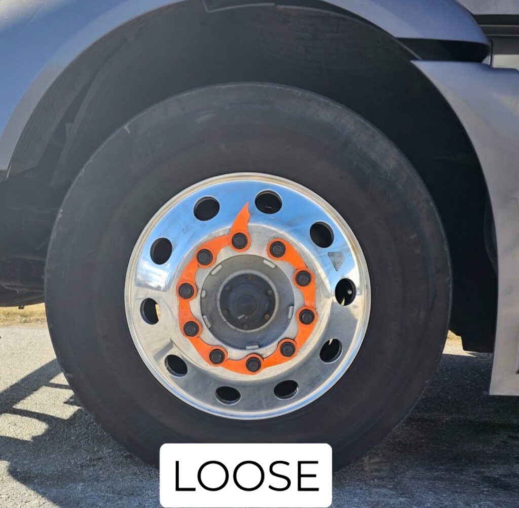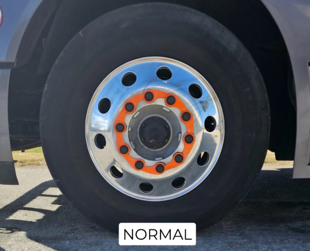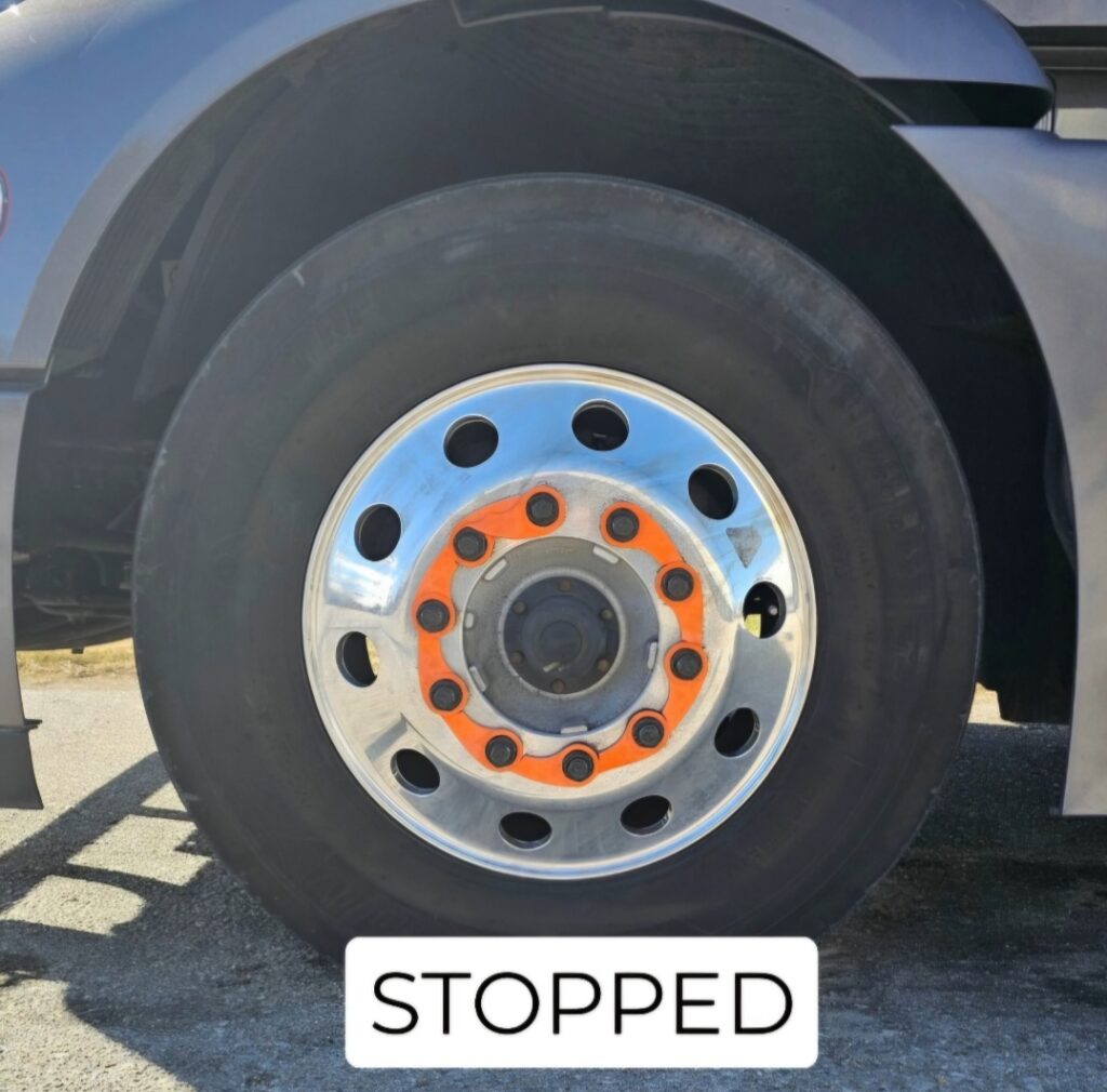 LugLockz indicators remain aligned when lug nuts are properly torqued. Drivers and technicians can quickly confirm wheel security during pre-trip and post-trip inspections.